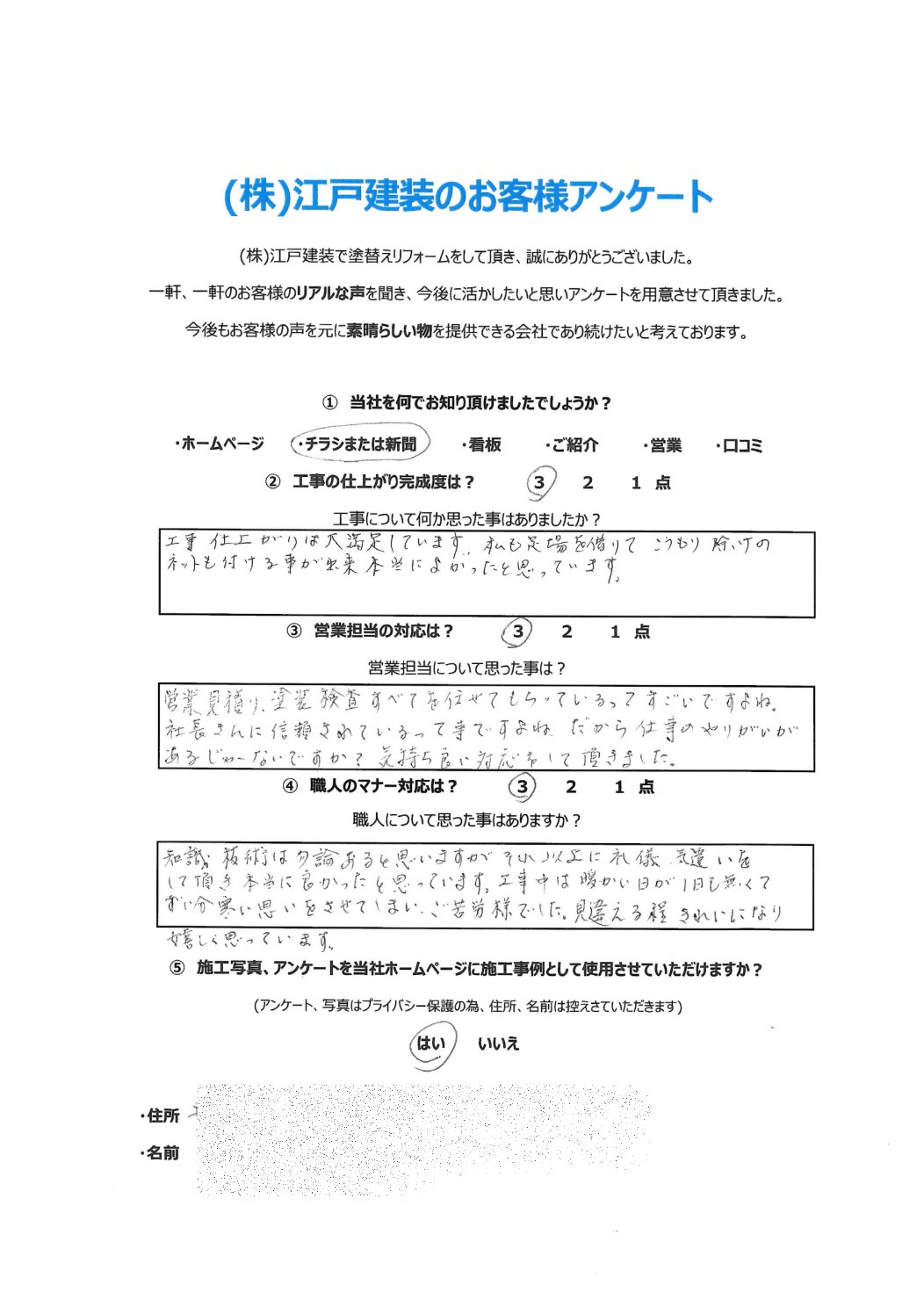 皆様のお声が届いています