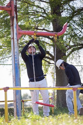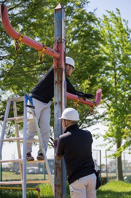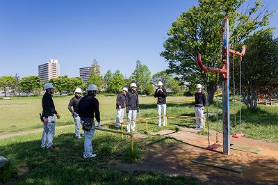 完成した遊具で遊ぶ子供たちを想像すると作業員も自然と笑みがこぼれます。