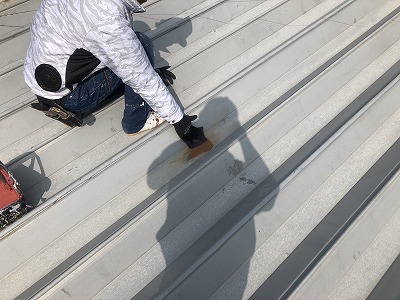 屋根はやはり熱くなりやすいですが、慎重に丁寧に作業しています!