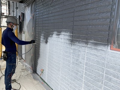 今回は吹付というやりかたで外壁を塗装していきます。