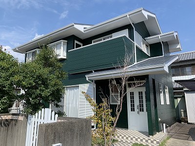 外壁にも艶が出て深い緑色と細部の白色の相性もバッチリです!!