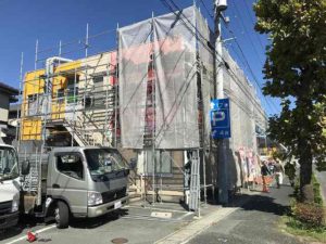 今週から、店舗の外壁塗装工事が始まりました。