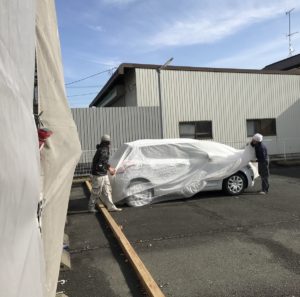帰って来た住民様の車に即、カーシート!