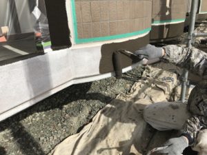 外壁の色替え部分、中塗り+上塗り作業です。