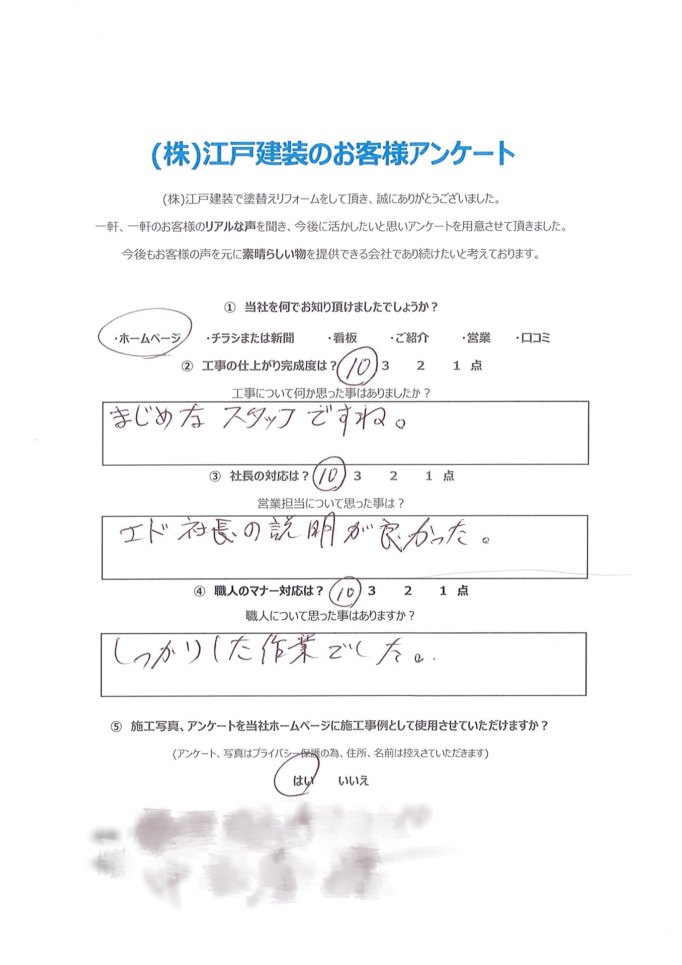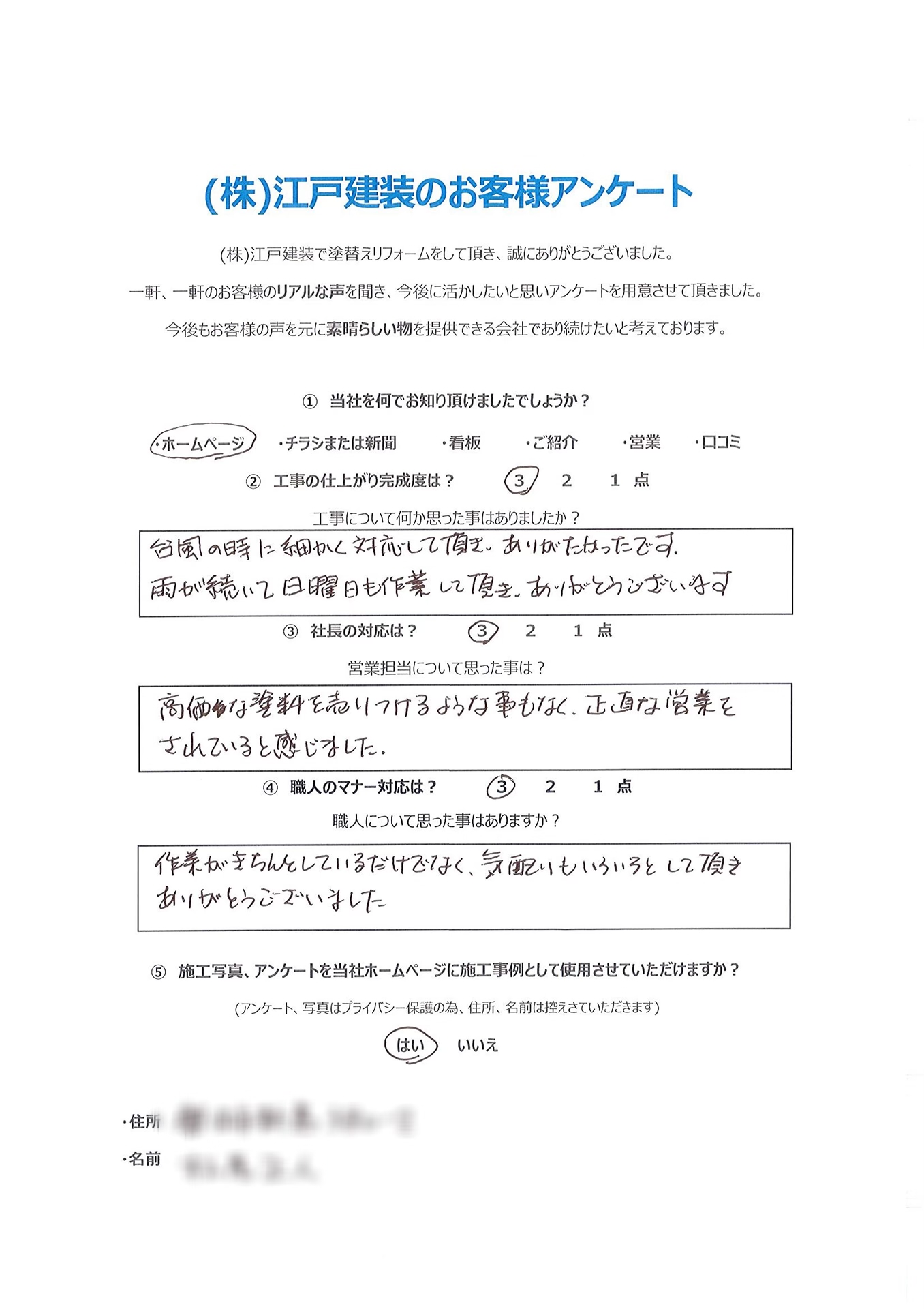 当社では、毎年1回ごとの定期点検を実施しております。 当社では施工が終わった時点から、施主様と当社との本当のお付き合いが始まると思っております。どうぞ末永いお付き合いをお願い申し上げます。